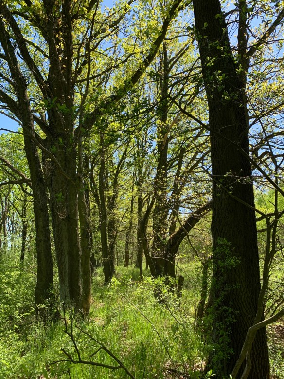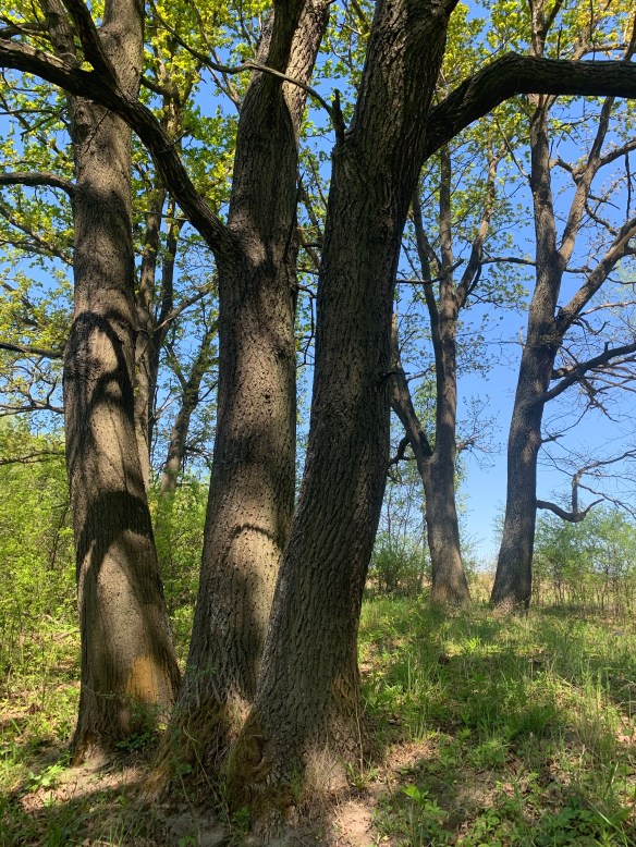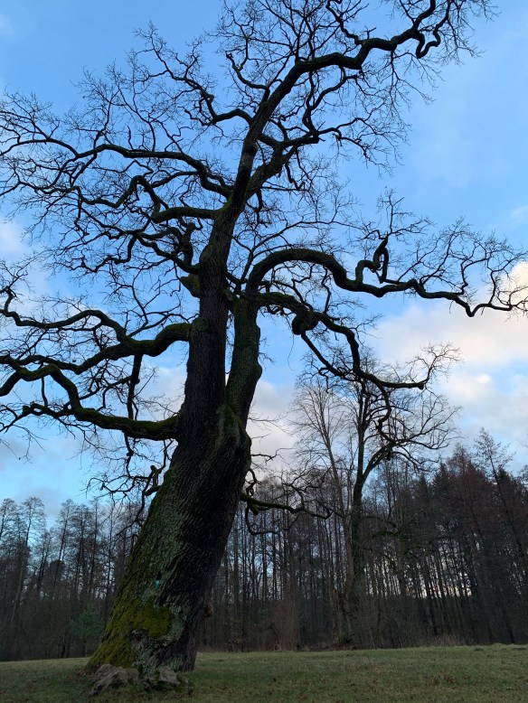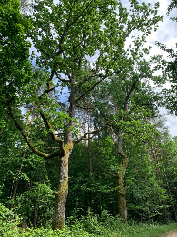 Przez oko Dębu Jagiełły patrzę na te dwa Nagie Dęby 🙂 i przypominam sobie jak pieruńsko kojąco wpływa na mnie pobyt w dębowym gaju, od razu ładują się wewnętrzne akumulatory.